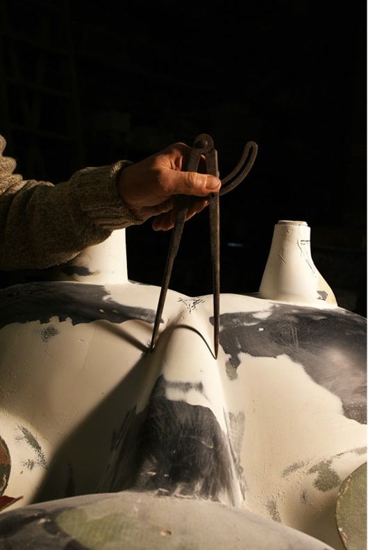 En 25 ans, une grande variété de Vasques Vives Virbela® ont vu le jour. La recherche en matière de création de formes et de leurs effets sur l’eau est en évolution permanente.- Même s’il est arrivé parfois de devoir sculpter les Vasques directement dans des blocs de pierre ou marteler une feuille de cuivre pour des commandes spéciales, de façon générale, les Vasques Vives sont faites en agrégat de pierre. D’autres matériaux résistants sont utilisés tel que la céramique et le verre.- L’obtention d’une forme est longue. Après une ou deux épreuves dans l’argile, on teste les propriétés de celle-ci en y faisant couler de l’eau. Une fois la forme obtenue, celle-ci passera par une succession de moulages (négatifs et positifs) en différent matériaux et affinés par ponçages pour obtenir un moule permettant la reproduction. Selon la taille de la pièce, plusieurs centaines d’heures de mains habiles sont nécessaires à l’ouvrage. Jérémie va ensuite dans les carrières choisir sa pierre selon des critères de taille, de couleur, de dureté etc. Les agrégats de pierre sont alors liés avec un ciment blanc sélectionné. Après le démoulage un travail de surface remet la pierre à nu pour faire ressortir son grain naturel