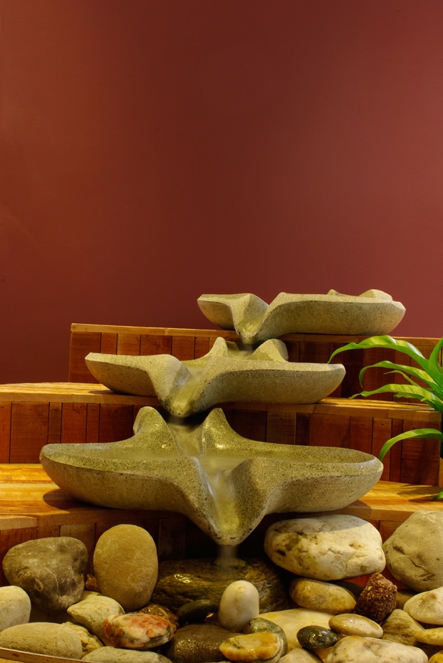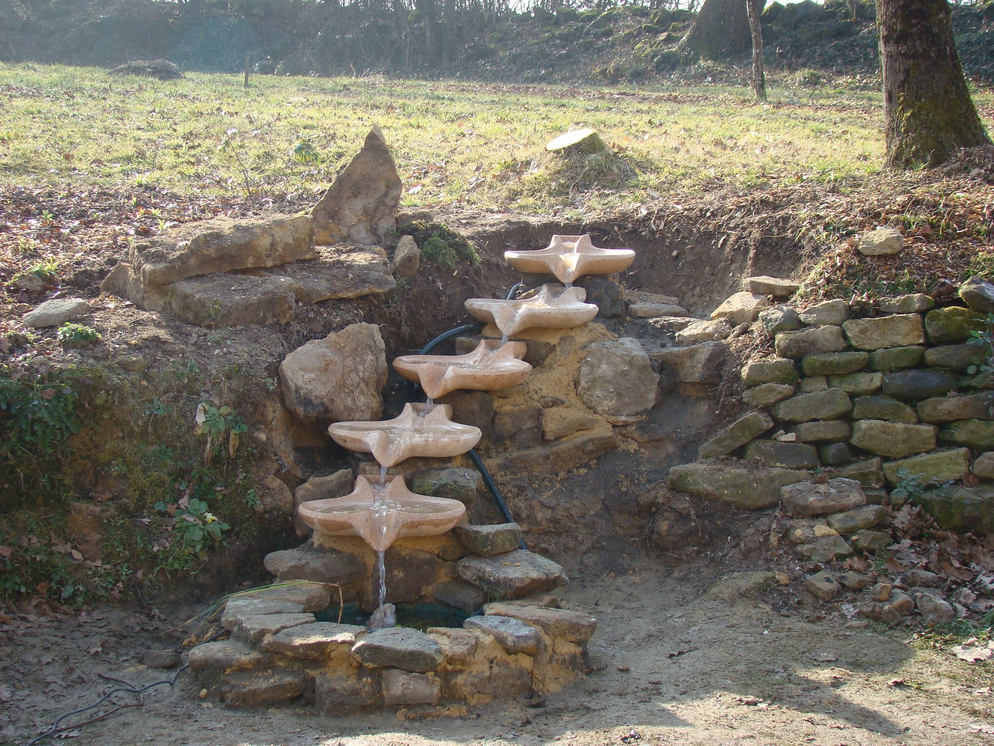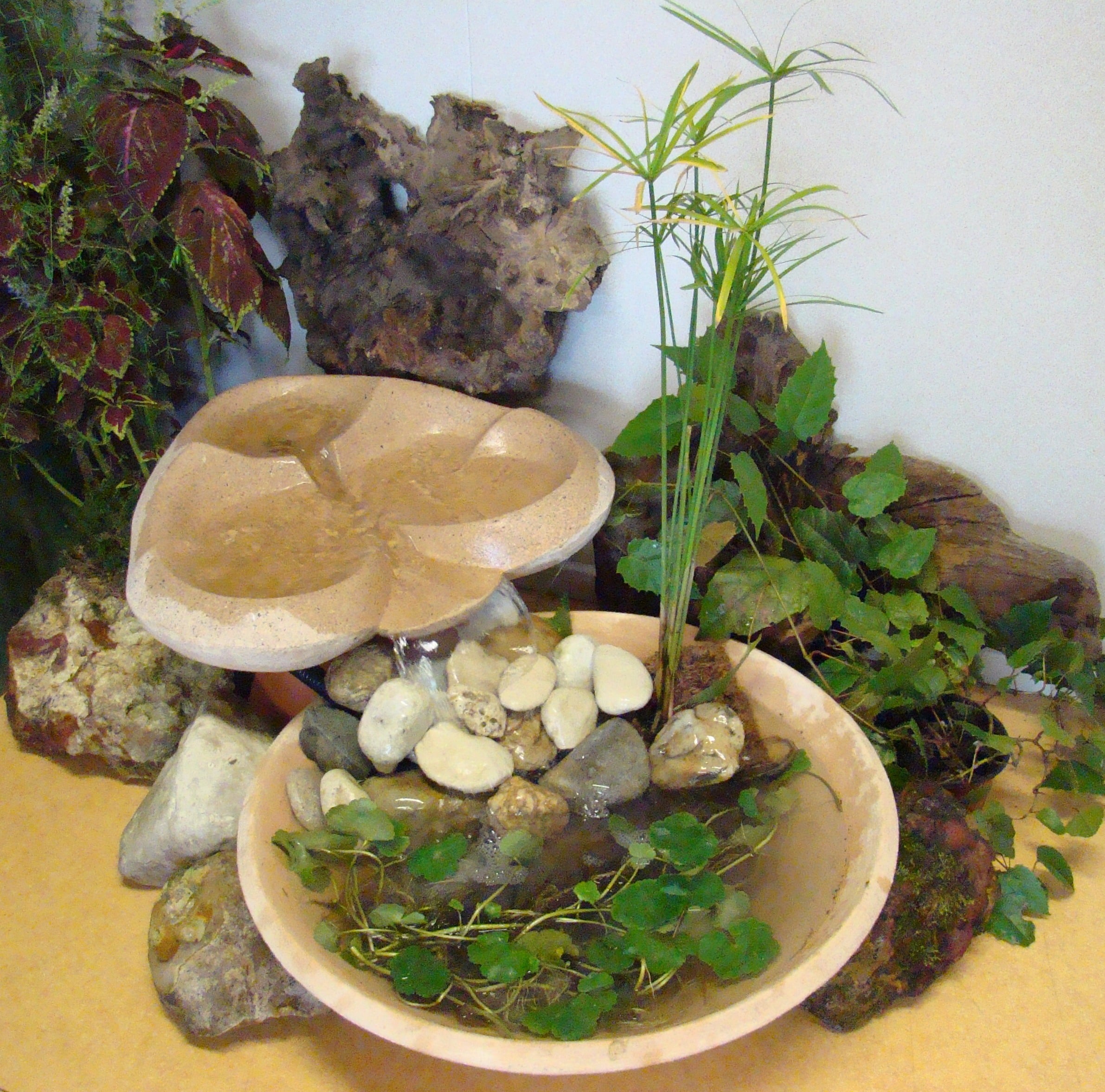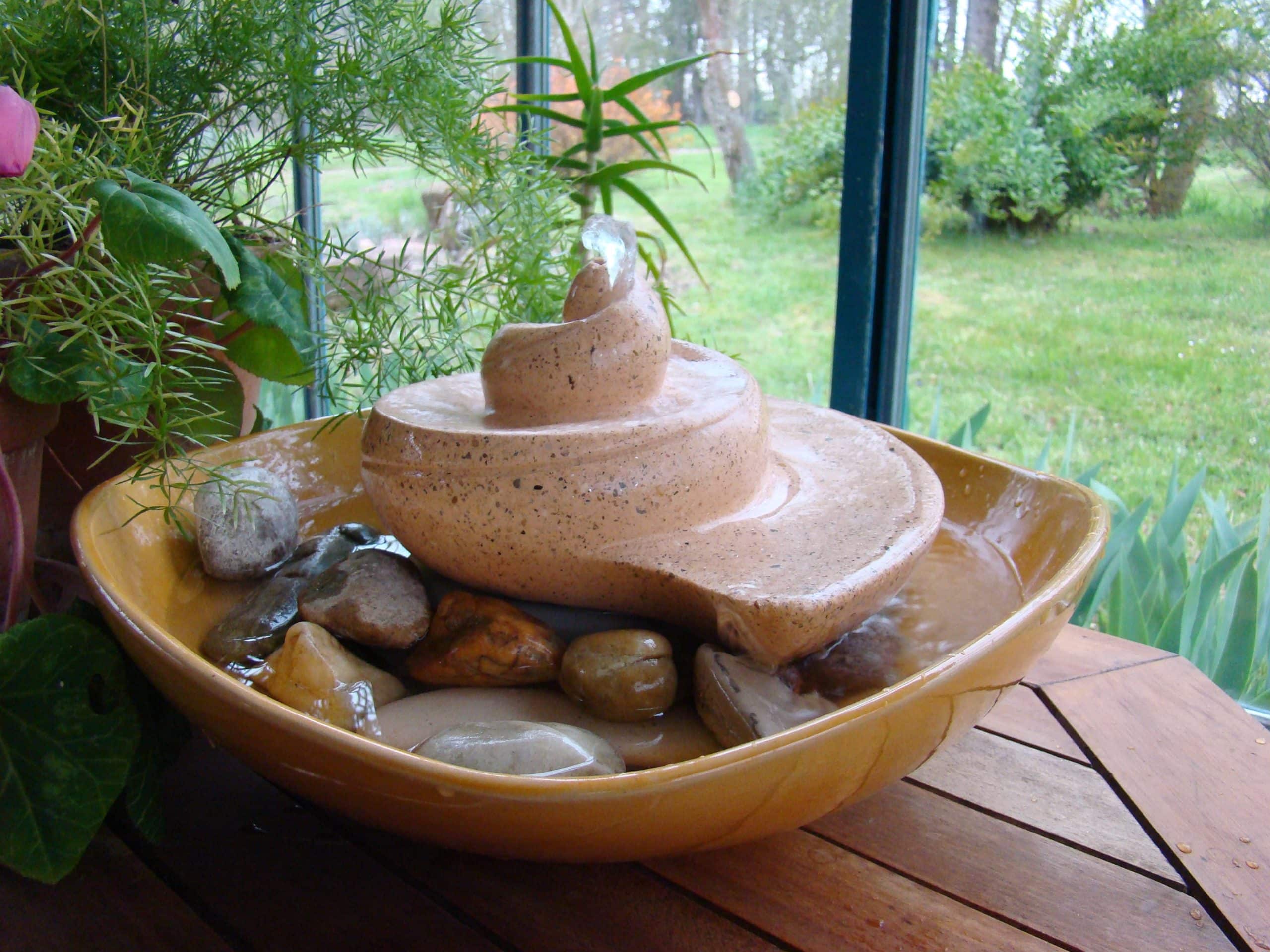 (Kit* = Ensemble complet fontaine d’intérieur : pompe, tuyauterie, colonne de support, réception terre cuite ou pierre reconstituée)