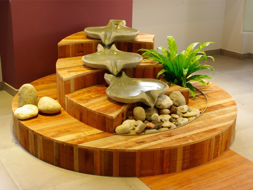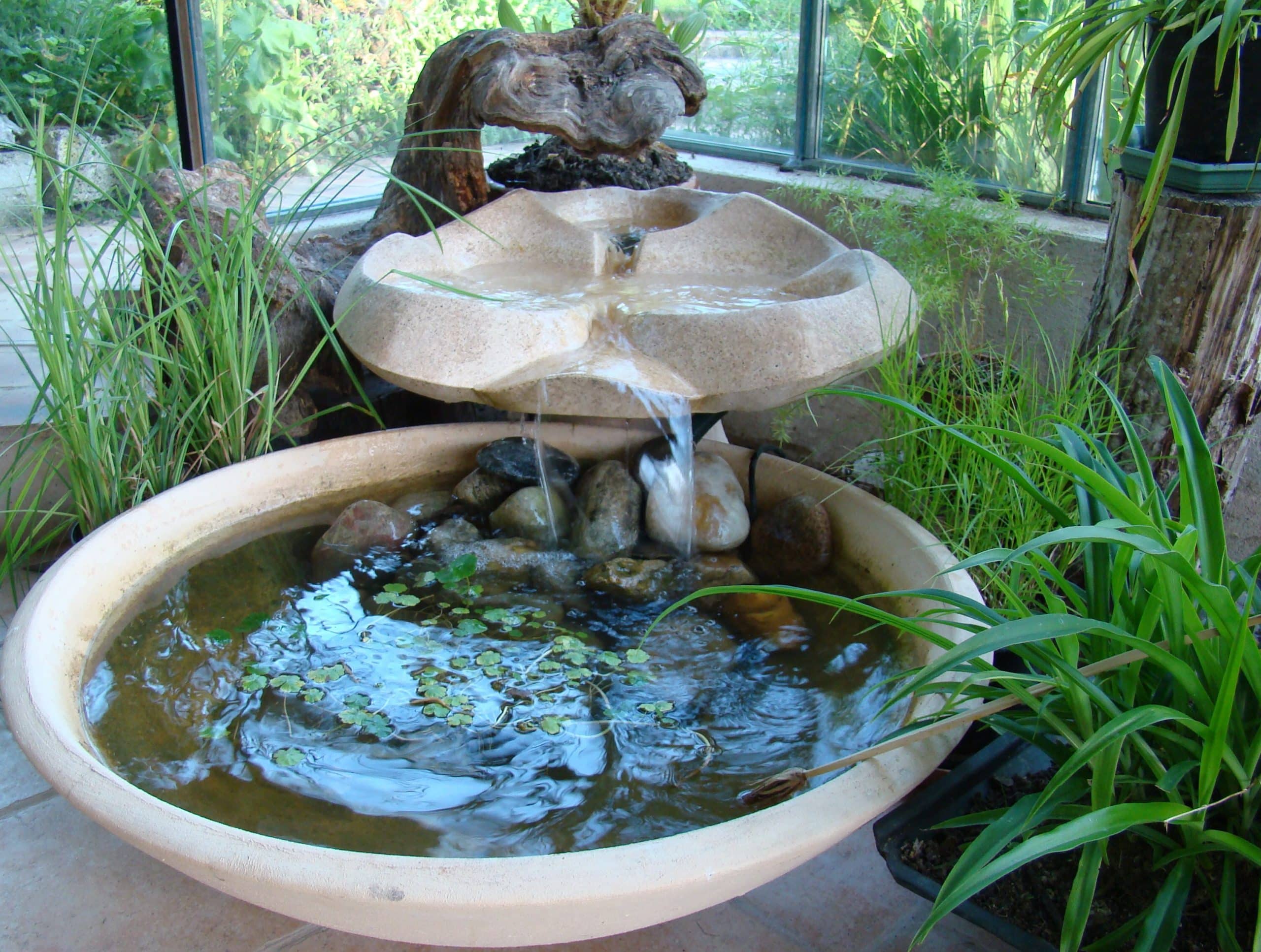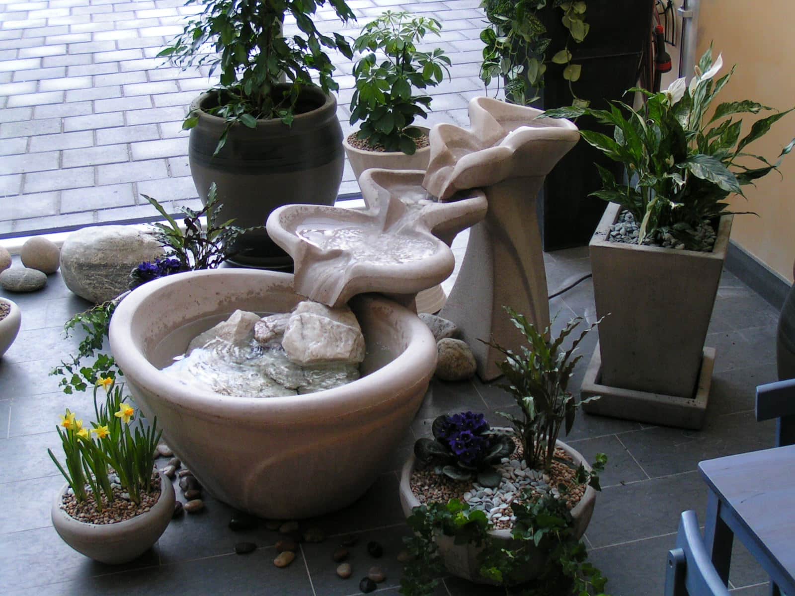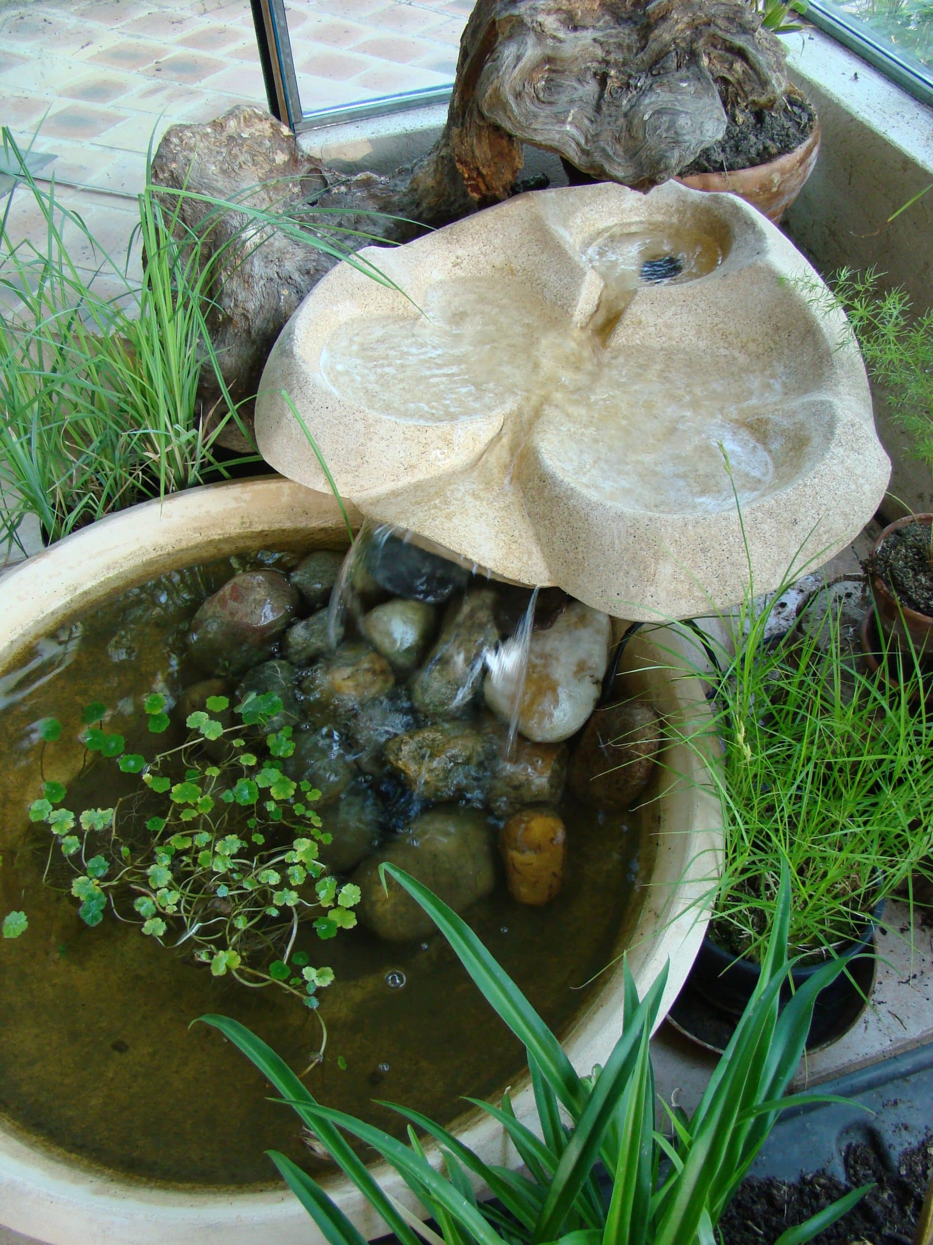 (Kit* = Ensemble complet fontaine d’intérieur : pompe, tuyauterie, colonne de support, réception terre cuite ou pierre reconstituée)