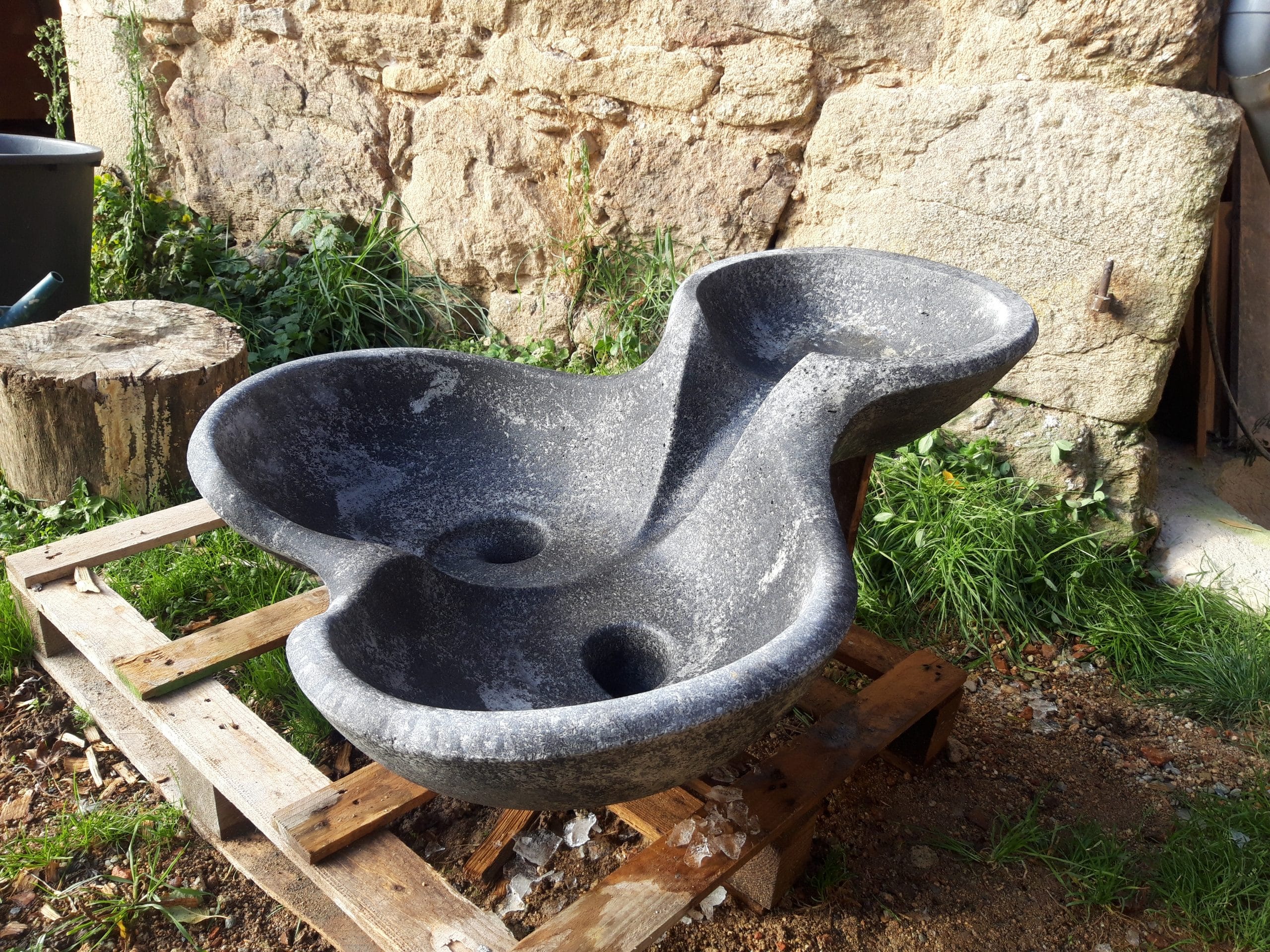 • Les vasques vives sont constituées de pierres broyées de couleurs, produisant les 4 aspects suivants : Silice/Crème, Granit /Saumon,  Granit /Vert de gris et Basalte