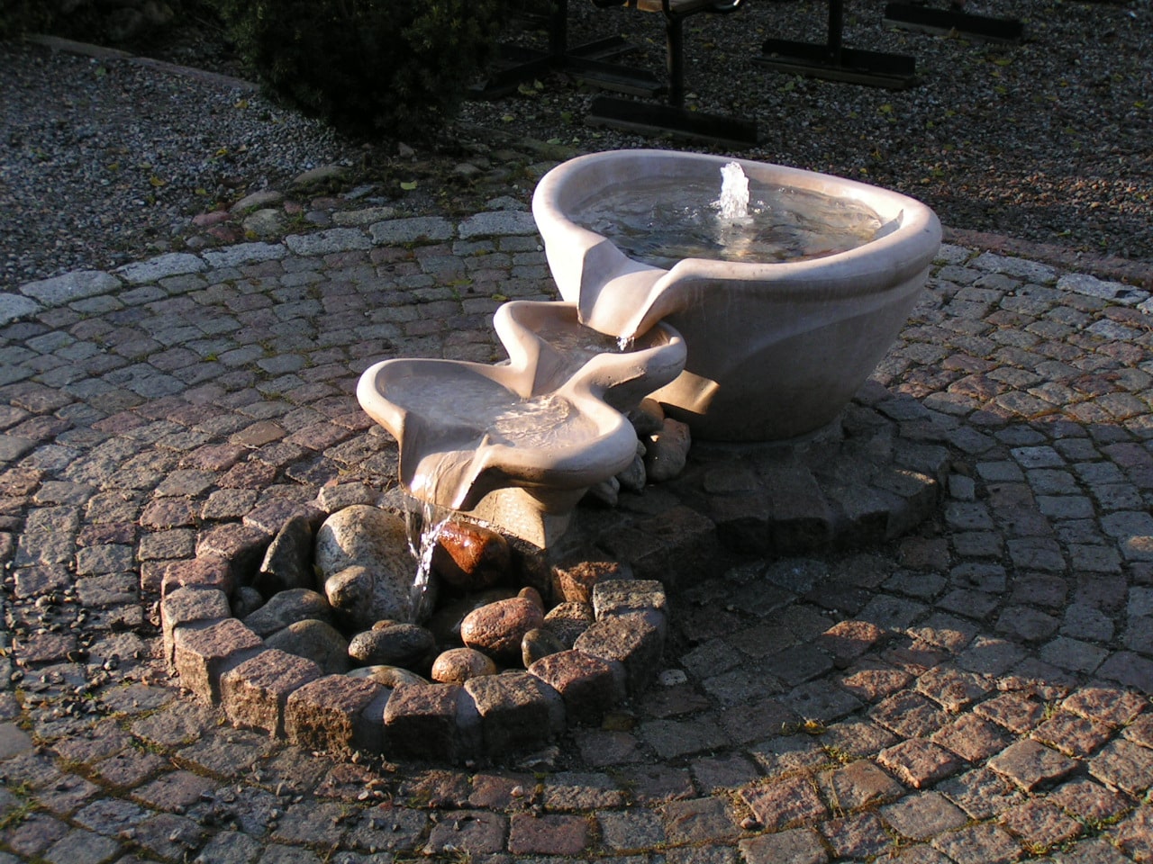 Inspirée des principes du « Feng Shui » cette fontaine décrit en surface une subtile lemniscate avant de disparaître dans un double mouvement de vortex.